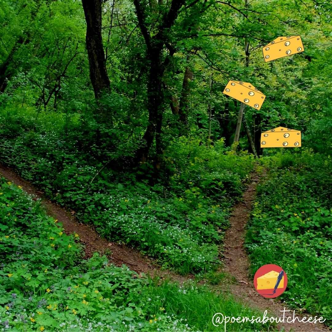 Two Roads Diverge February 9, 2022August 6, 2022 two roads diverge in a yellow woodand I –I took the one with cheeseand that has made all the difference Share this: Click to share on X (Opens in new window) X Click to share on Facebook (Opens in new window) Facebook Like Loading... Related