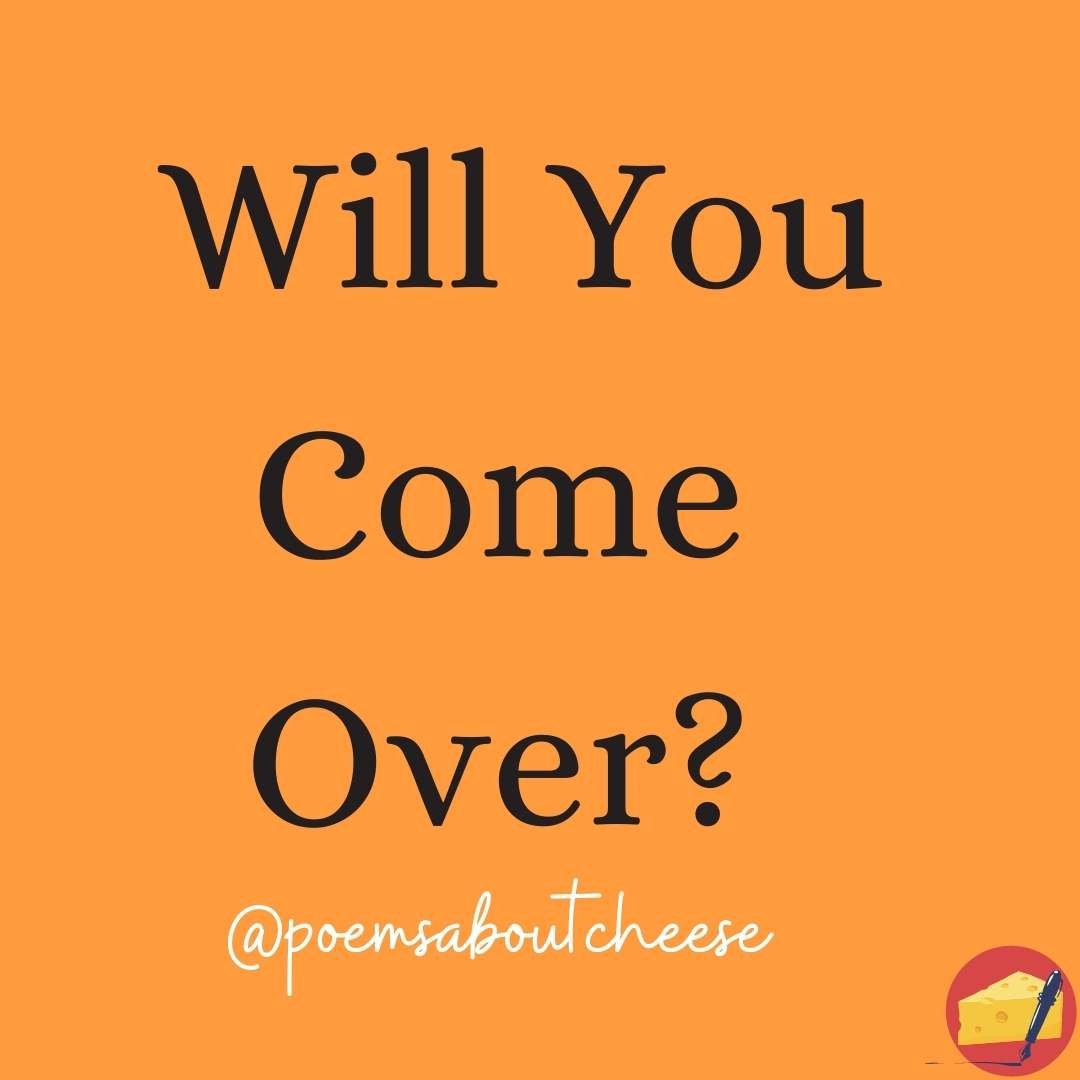 Will You Come Over? March 5, 2022August 7, 2022 I’m bored, will you come over please?-No. I’ll put out a platter of cheese.-Maybe.You don’t have to talk to me.-Okay. Share this: Click to share on X (Opens in new window) X Click to share on Facebook (Opens in new window) Facebook Like Loading... Related
