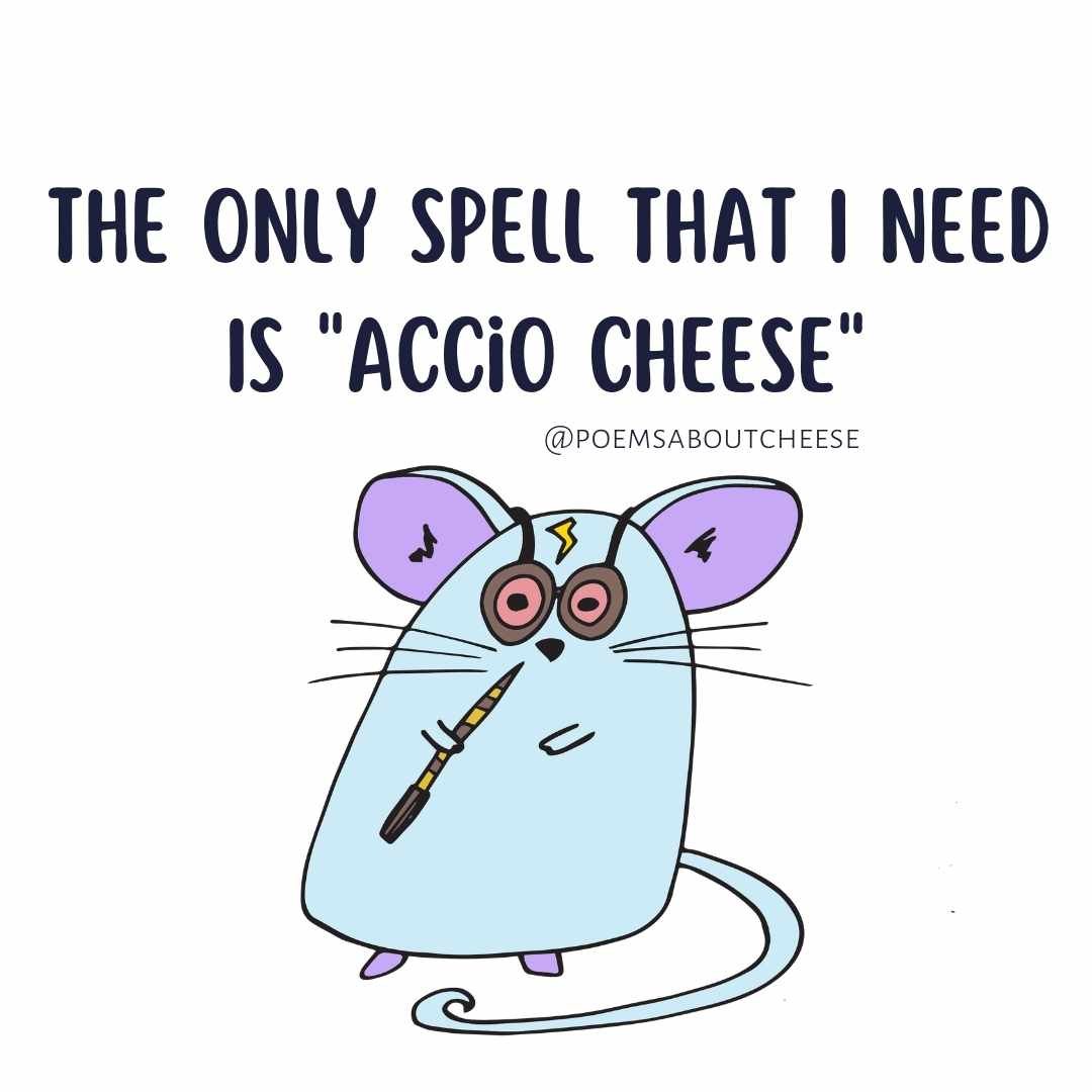 The Only Spell I Need April 27, 2022August 8, 2022 The only spell that I needIs “Accio cheese” Share this: Click to share on X (Opens in new window) X Click to share on Facebook (Opens in new window) Facebook Like Loading... Related